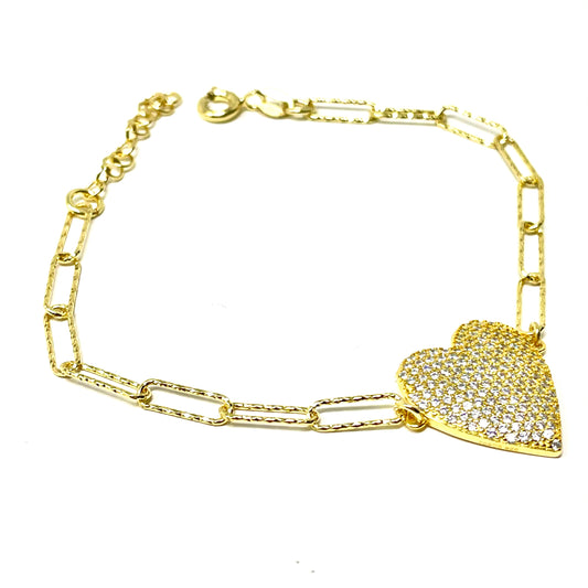 Bracciale "Cuore" in Argento925 tempestato di Zirconi - Colore Oro