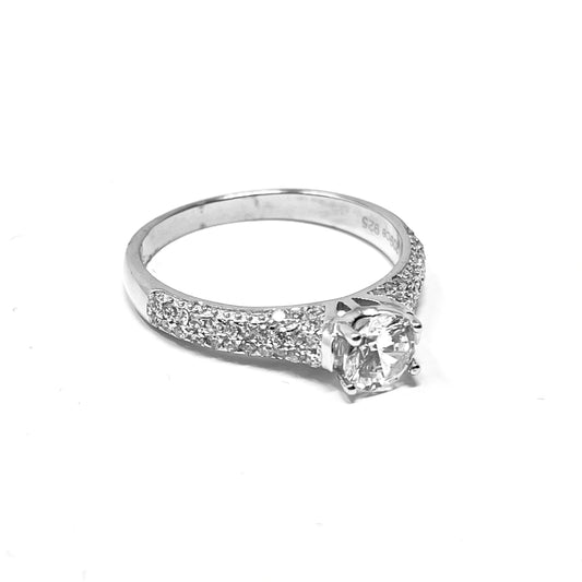Anello con solitario e punti luce - Argento925 - Taglia regolabile
