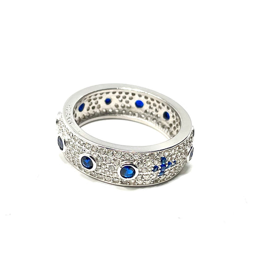 Anello "Rosario" in Argento925 con zirconi Blu e dettagli eleganti