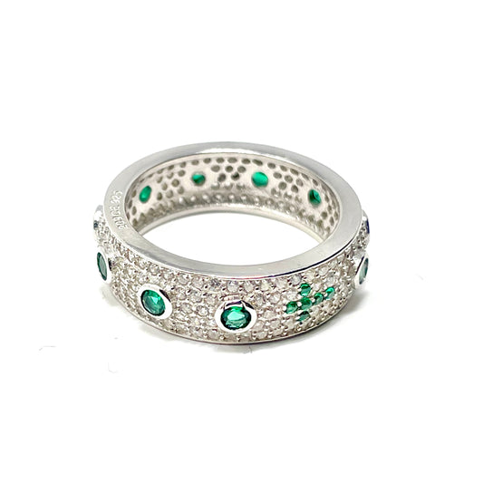 Anello "Rosario" in Argento925 con zirconi Verdi e dettagli eleganti