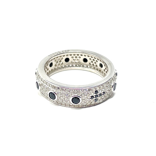 Anello "Rosario" in Argento925 con zirconi Neri e dettagli eleganti